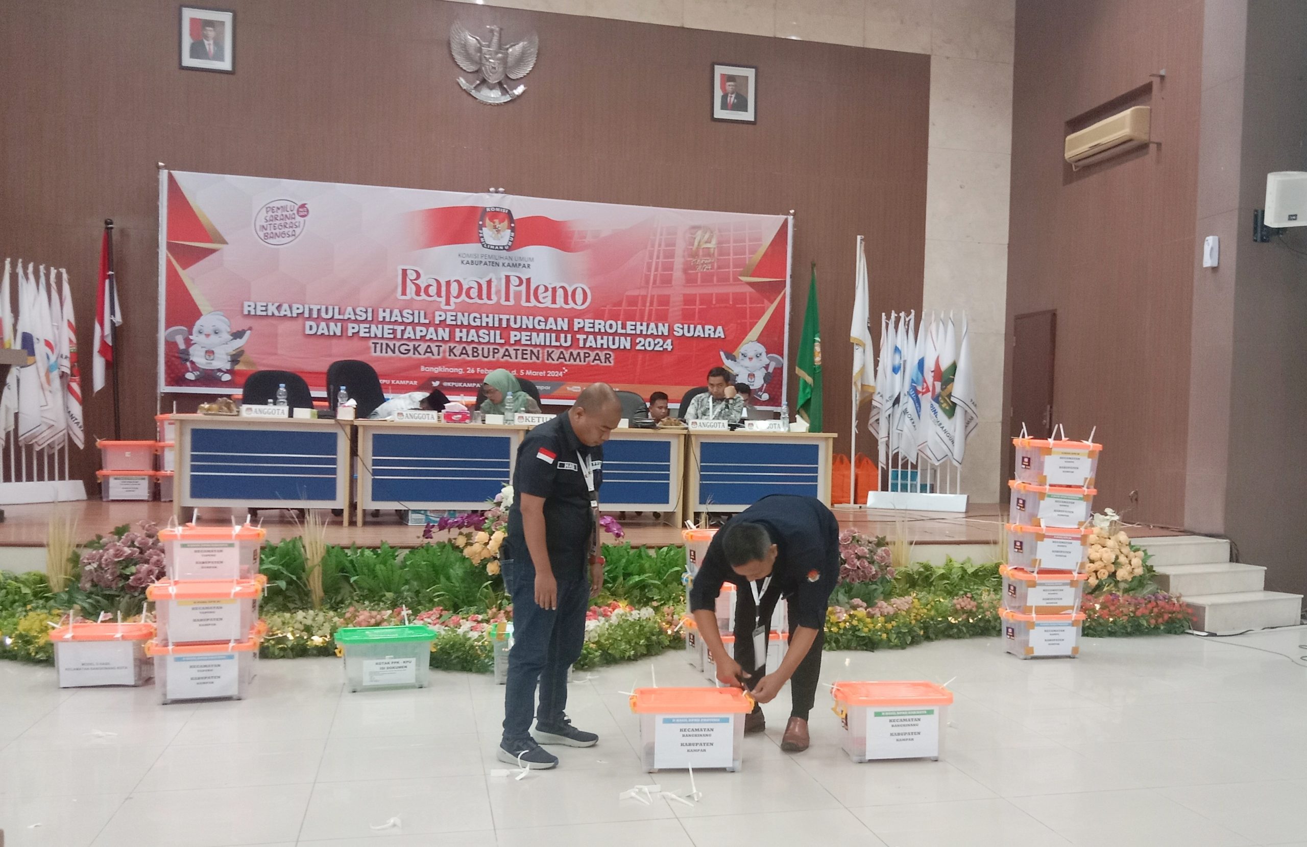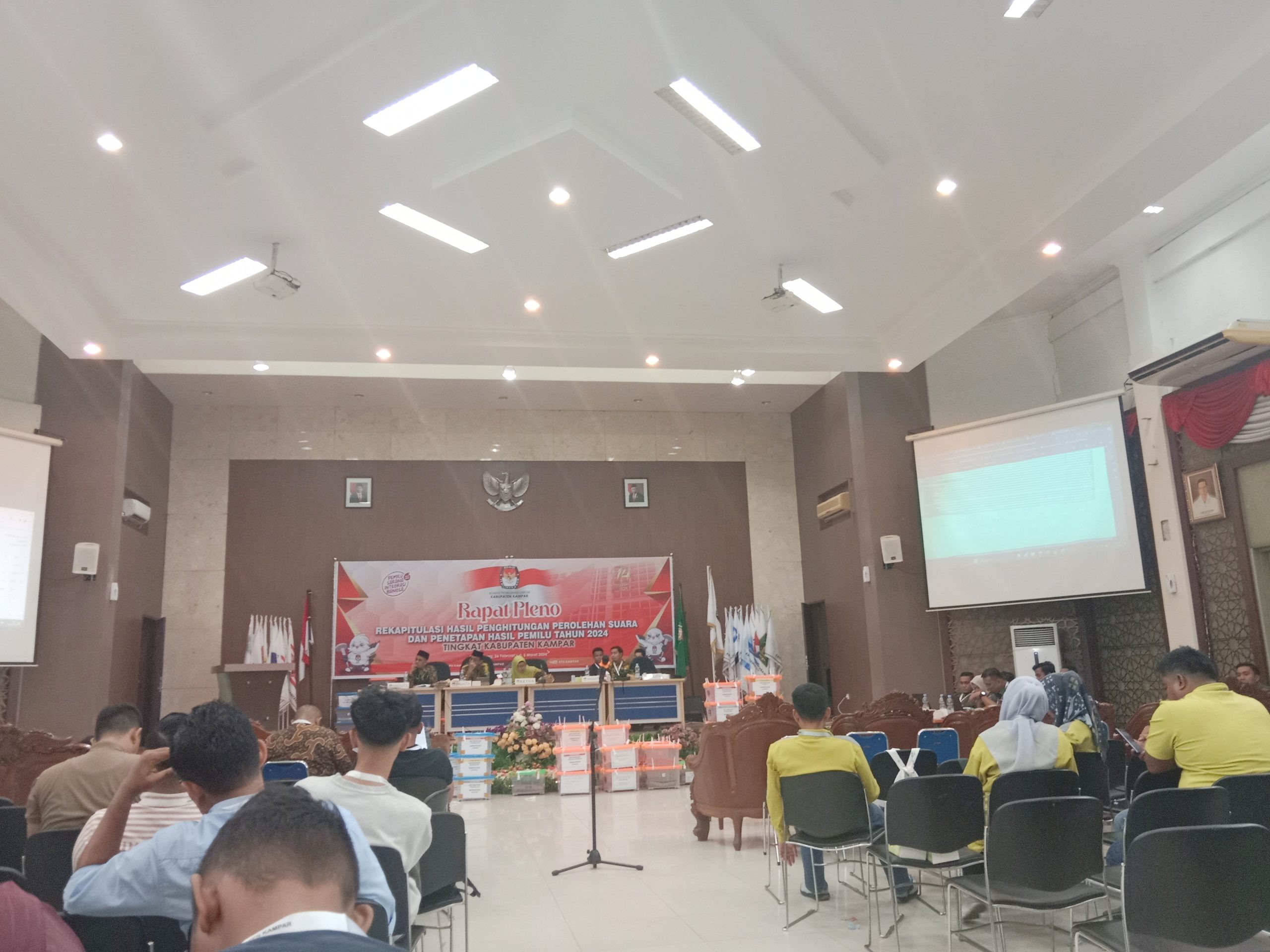 Bangkinang : Hari ketiga Rapat Pleno KPU  pada Rabu (28-02-2024) sudah menyelesaikan 12 kecamatan pada saat berita ini diturunkan. Dari pantauan www.ruangindonesiabiara.com Rapat pleno rekapitulasi penghitungan perolehan suara dan penetapan hasil pemilu 2024 tingkat Kabupaten Kampar ini berjalan cukup alot walaupun yang menghadiri pleno tersebut tidak sebanyak dua hari sebelumnya.