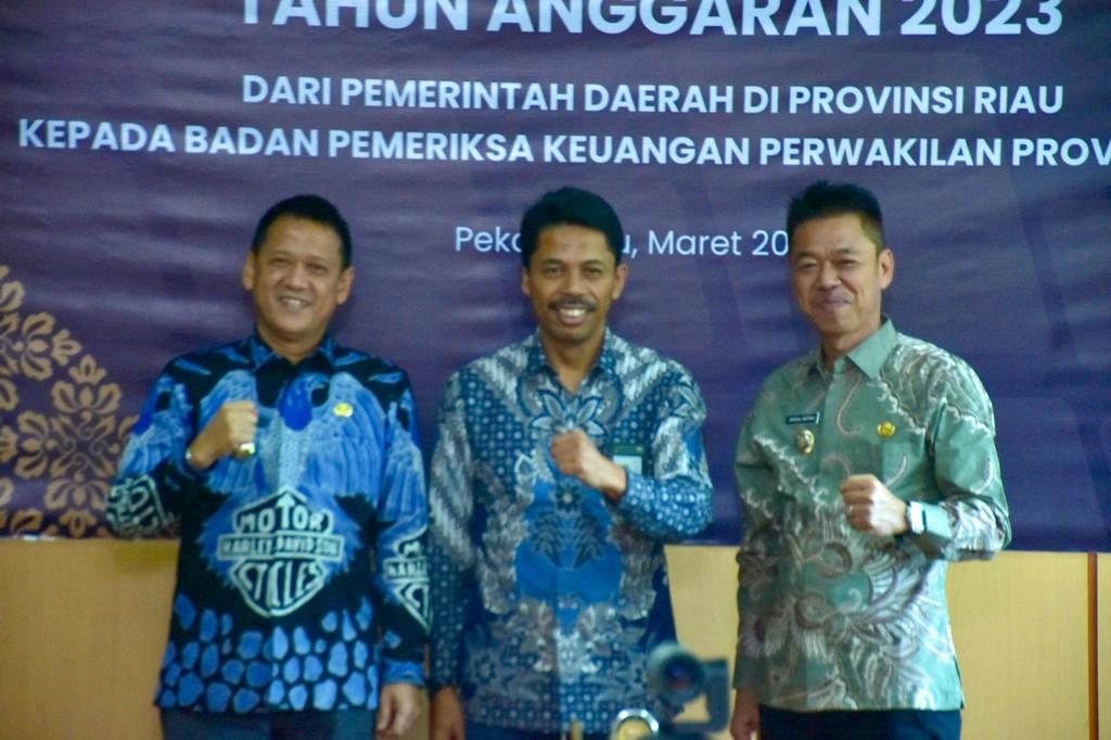 Pada Kegiatan ini diawali dengan melakukan penandatangan berita acara serah terima oleh Pj Bupati Kampar H. Hambali, SE.MH dengan Kepala BPK Perwakilan Riau Jariyatna sekaligus juga dilakukan penandatangan berita acara serah terima oleh Bupati Rohil Afrizal Sintong, S.IP.M.Si, yang mana pada waktu yang bersamaan dilakukan penyerahan LKPD anggaran 2023 oleh dua Kabupaten Sekaligus yakni Kabupaten Kampar dan Kabupaten Rokan Hilir.
