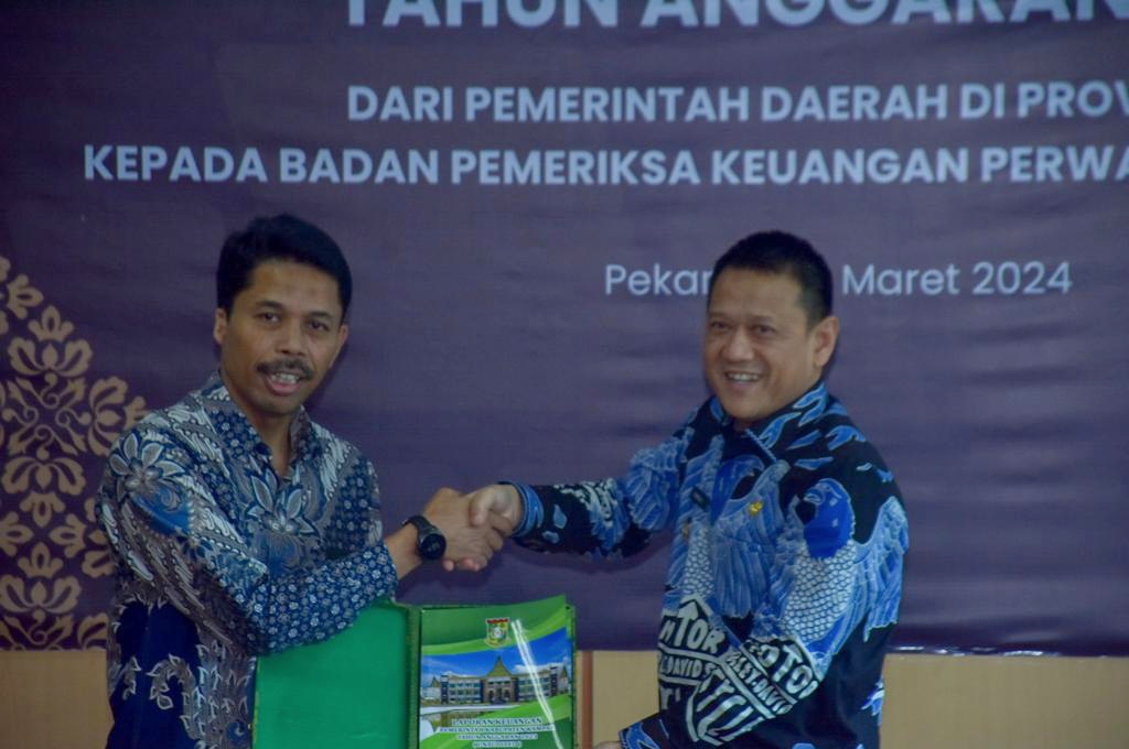 PEKANBARU – Pj Bupati Kampar H. Hambali, SE.MH menyerahkan Laporan Keuangan Pemerintah Daerah (LKPD) Unaudited (laporan yang belum diaudit) tahun anggaran 2023 kepada Badan Pemeriksa Keuangan (BPK) RI Perwakilan Provinsi Riau yang dilaksanakan di Kantor BPK Perwakilan Provinsi Riau di Pekanbaru. Kamis, (28/3/2024)
