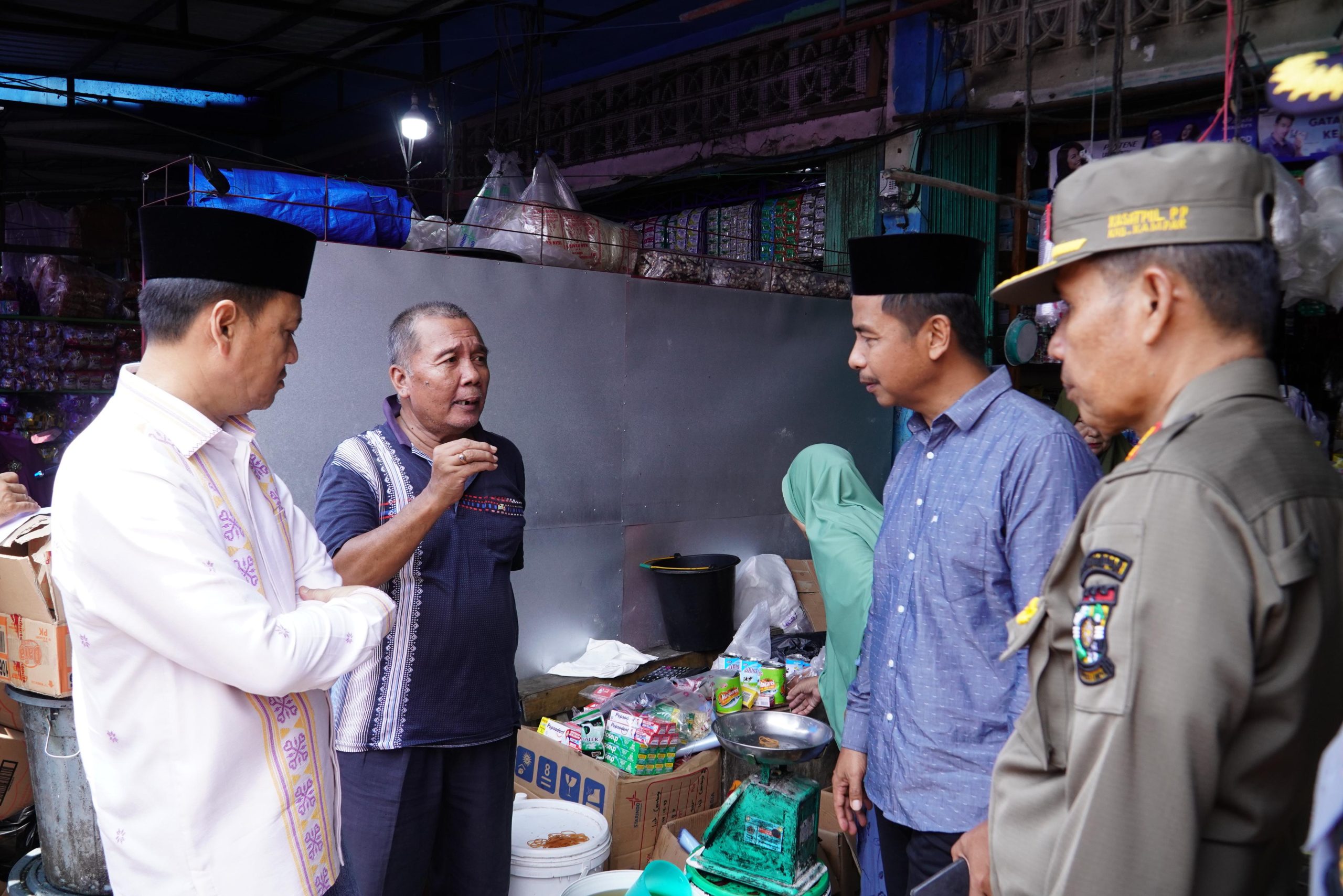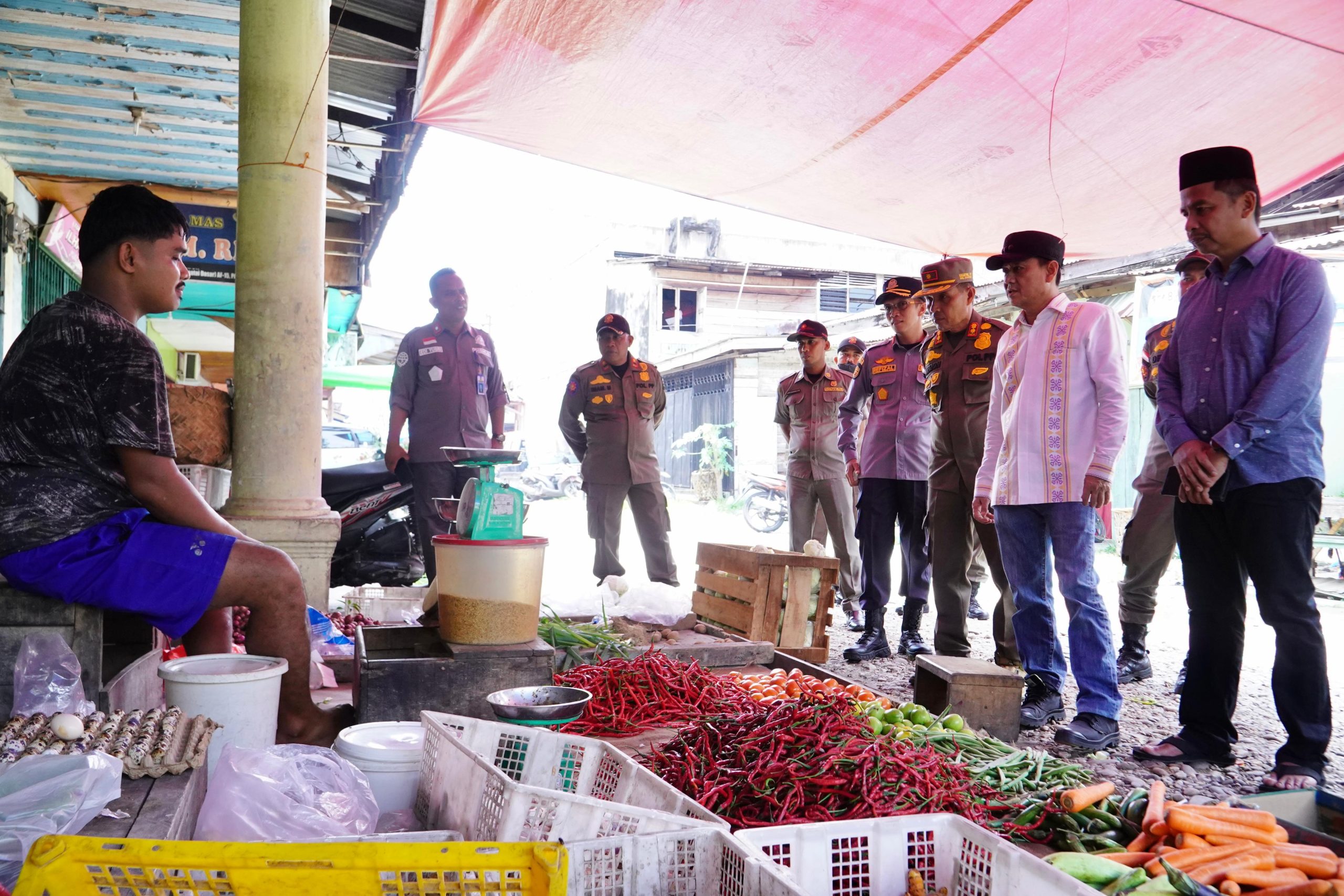 Pj Bupati Kampar didampingi langsung Plh Sekda Kampar Ahmad Yuzar,S.Sos,MT turun langsung ke Pasar Kuok guna melihat dan memastikan kestabilan harga bahan pokok disaat sehari menjelang lebaran.