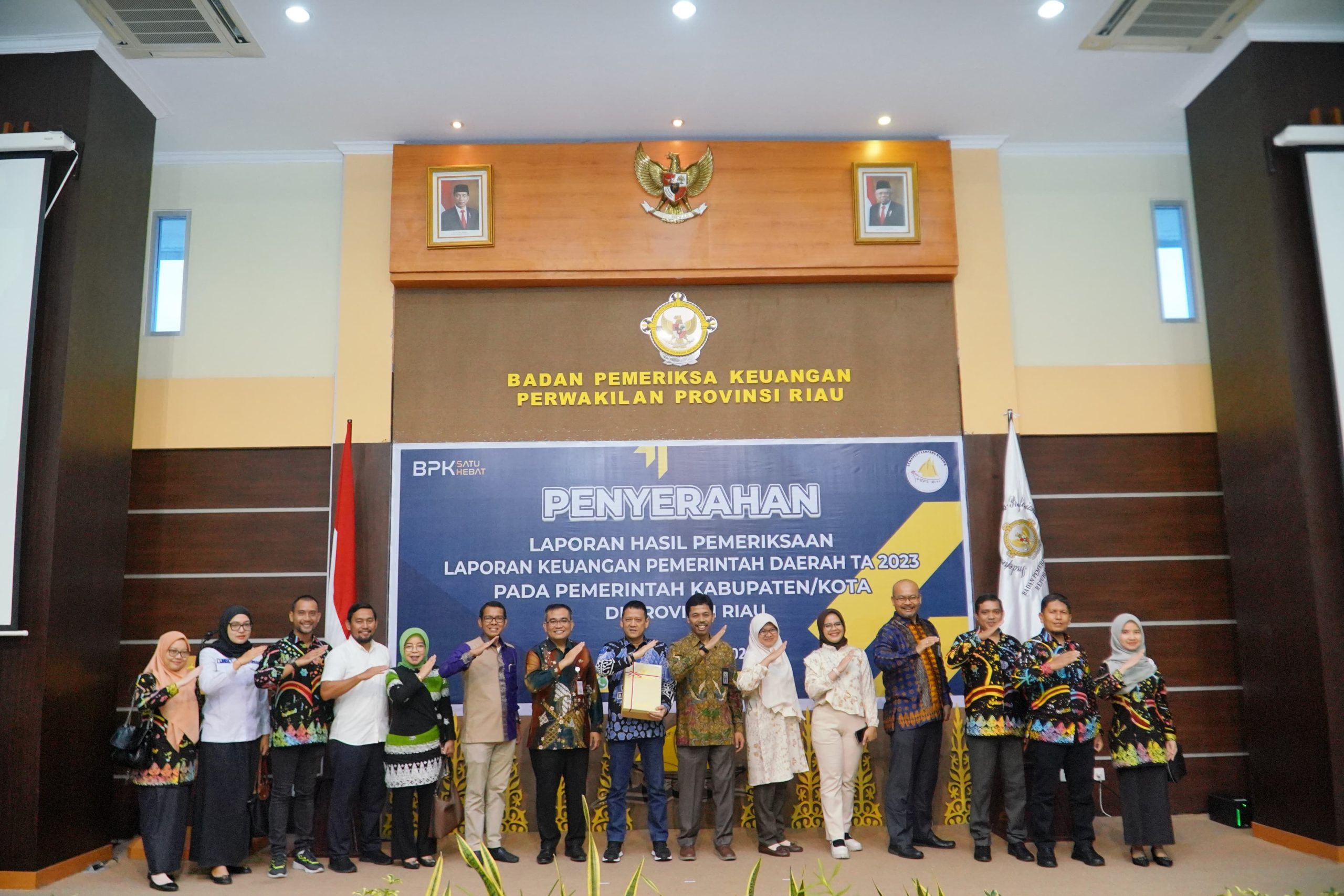 Penyerahan LHP LKPD Tahun Anggaran 2023 pada Pemerintah Kabupaten /Kota di Provinsi Riau dilaksanakan di Gedung Badan Pemeriksa Keuangan Perwakilan Provinsi Riau di Pekanbaru pada hari Rabu,(22-05-24).