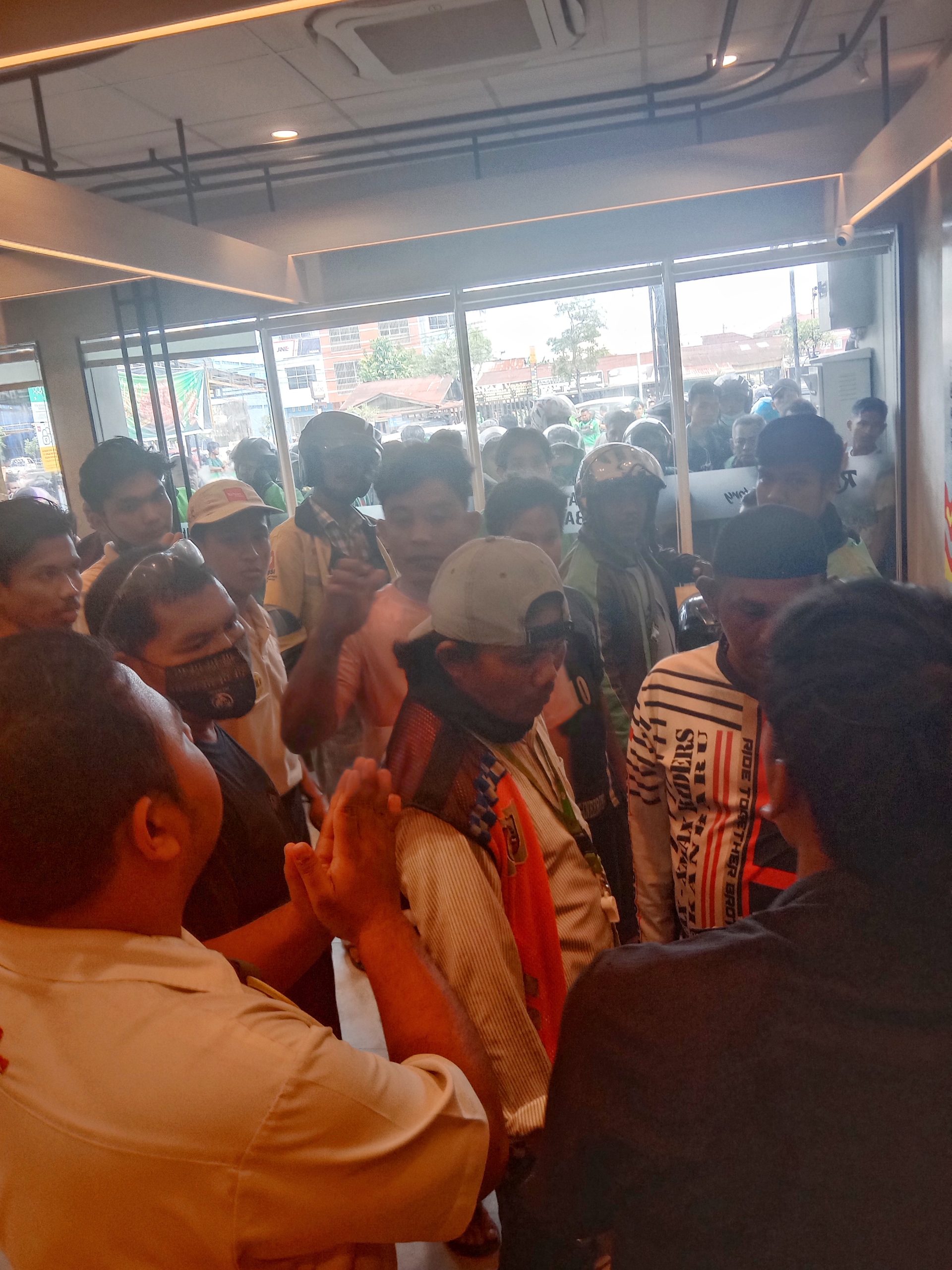 Beruntung beberapa pihak segera menutup pintu restoran dan menahan para ojol yang mencoba masuk. Suasana cukup tegang, beberapa kali supervisor Ricis Factory Yudistira memohon agar mereka menyelesaikan masalah ini di luar, namun Jukir menolak keluar karena takut ancaman keamananya melihat ojol yang semakin banyak di luar dan memenuhi hampir seluruh halaman restoran bahkan hingga ke jalan Sobrantas tersebut.