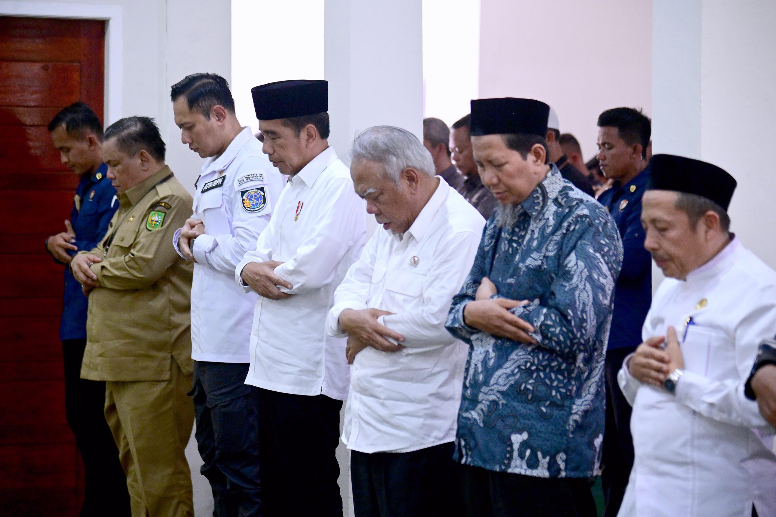 Tambang, Ada momen menarik usai Presiden Joko Widodo menunaikan shalat Jumat di Masjid Abdullah bin Abbas Kecamatan Tambang, Presiden menyapa jemaah yang hadir dan membagikan sembako kepada sejumlah warga, Jum’at (31/5)