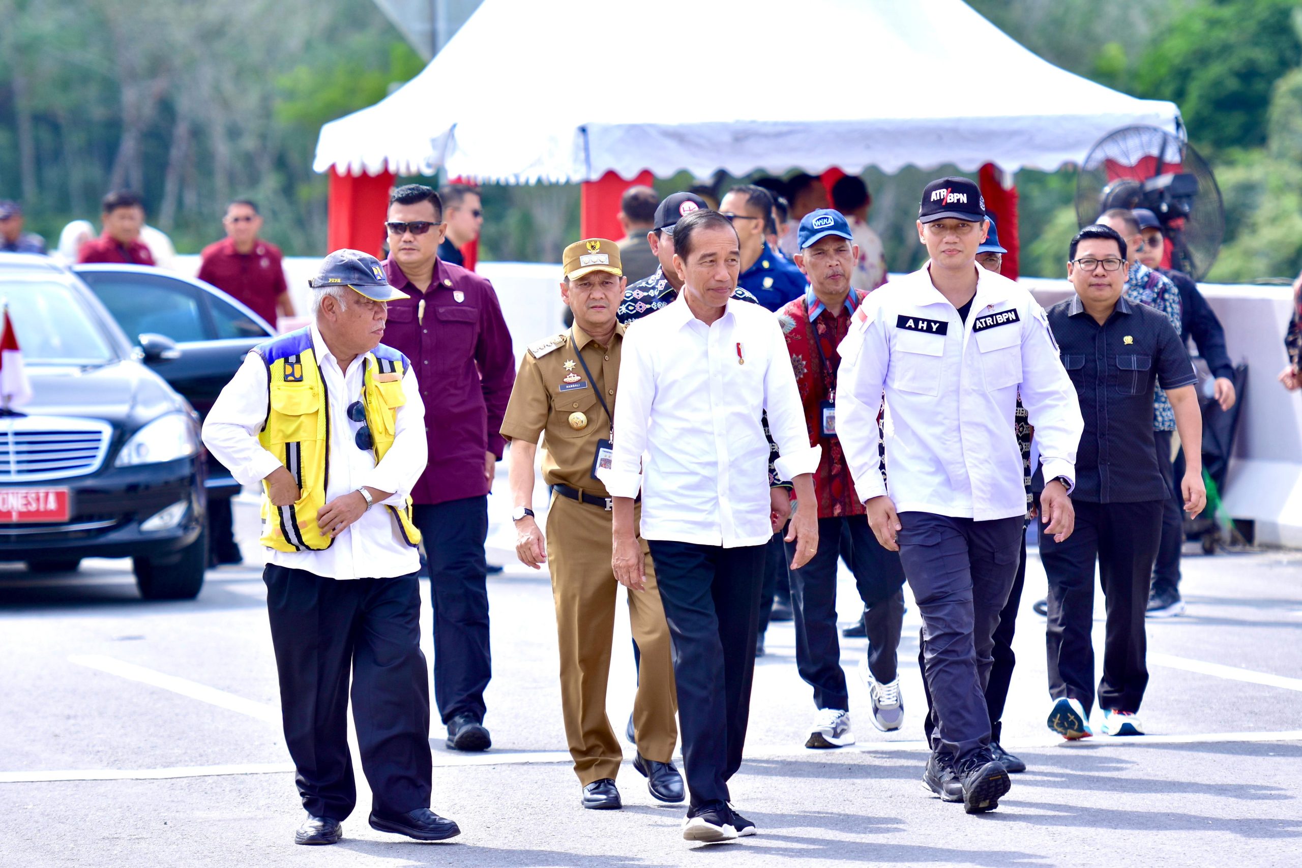 Dalam kunjungan orang nomor satu di Indonesia tersebut, beliau didampingi Menteri Agraria dan Tata Ruang/Kepala Badan Pertanahan Nasional (ATR/BPN), Agus Harimurti Yudhoyono, Menteri Pekerjaan Umum dan Perumahan Rakyat (PUPR) Basuki Hadimuljono.