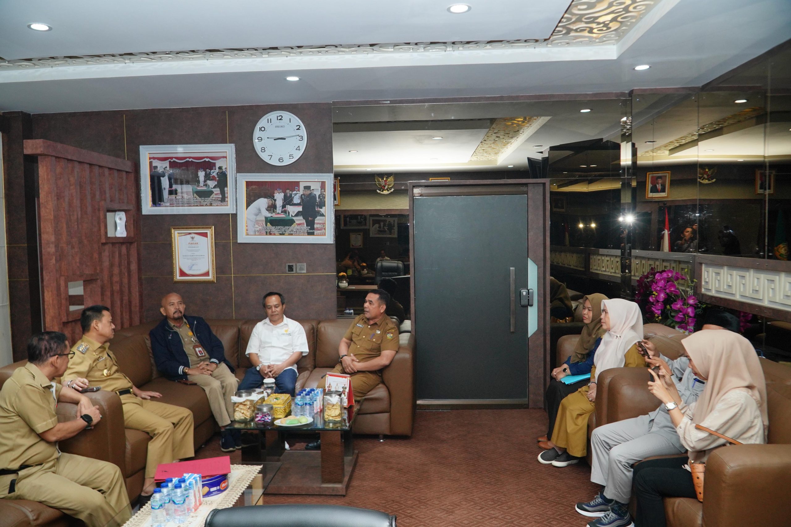 Monitoring atas Kepatuhan Badan Publik dalam mengimplementasikan Keterbukaan Informasi Publik tersebut, Ketua dan rombongan terlebih dahulu melakukan Audiensi dengan Pj Bupati Kampar Hambali,SE,MH di ruang kerjanya Kantor Bupati Kampar Bangkinang Kota.