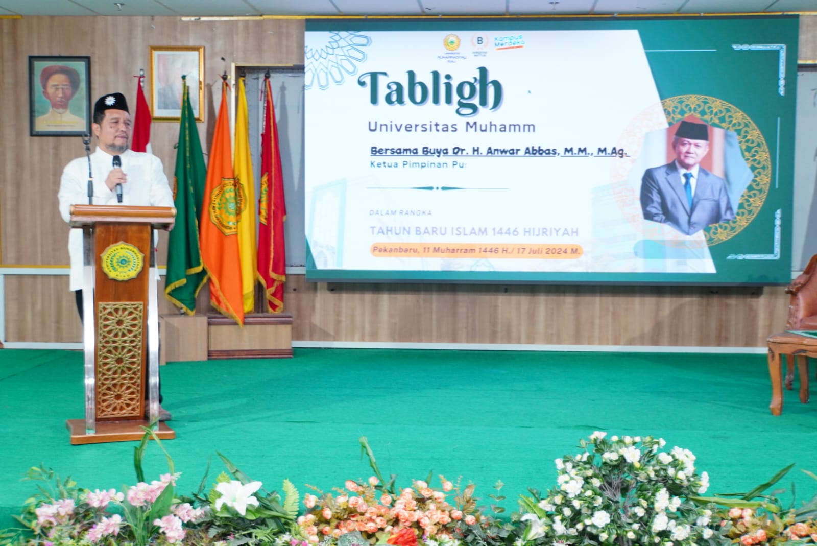 Pekanbaru – Universitas Muhammadiyah Riau (UMRI) menggelar Tabligh Akbar dalam rangka memperingati Tahun Baru Islam 1446 Hijriyah dengan menghadirkan Ketua Pimpinan Pusat (PP) Muhammadiyah Dr H Anwar Abbas MM M Ag.