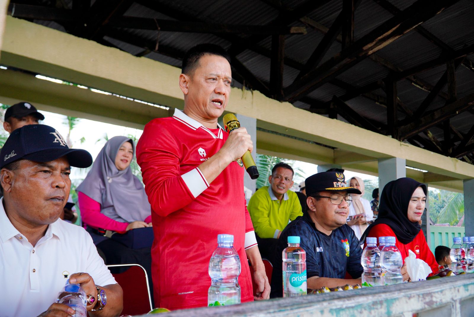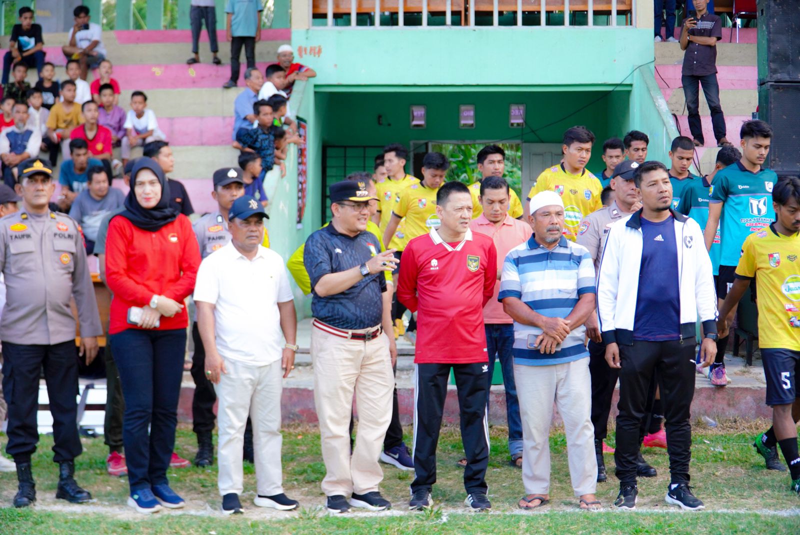 Sebelum melakukan tendangan pertama, Pj Bupati Kampar Hambali menyampaikan apresiasi kepada pemuda dan para panitia setempat yang telah siap melaksanakan hiburan masyarakat setiap sore ini.