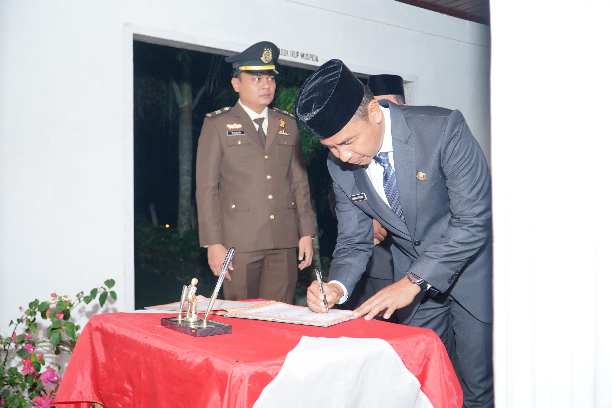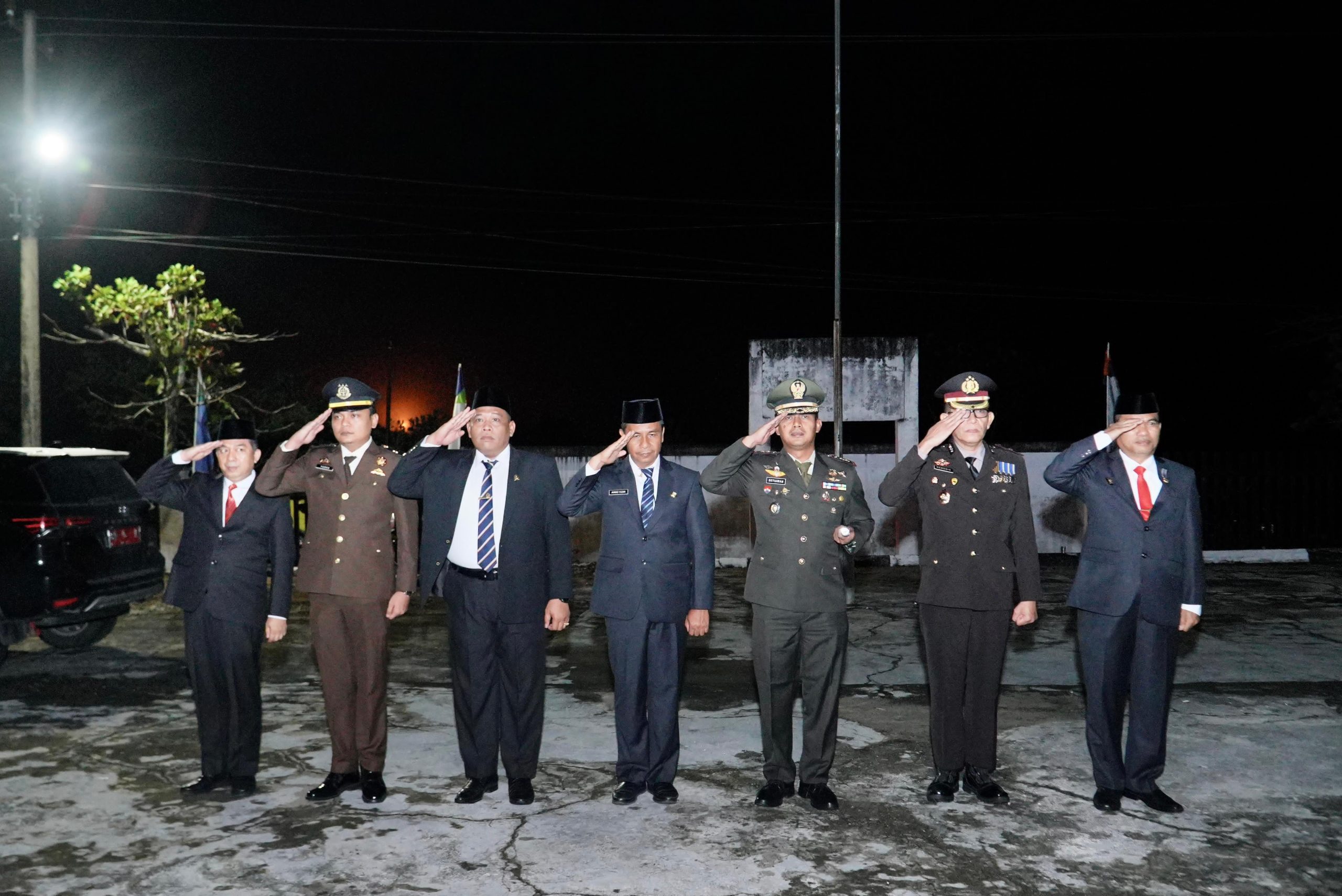 Dengan hanya menggunakan penerangan api obor, apel tersebut dihadiri oleh Pj Bupati Kampar Hambali,SE,MH diwakili Pj Sekda Kampar Ahmad Yuzar,S.Sos,MT, Forkopimda Kampar, para pejabat Eselon II dilingkungan pemda kampar, TNI, POLRI, Satpol PP dan Pramuka.