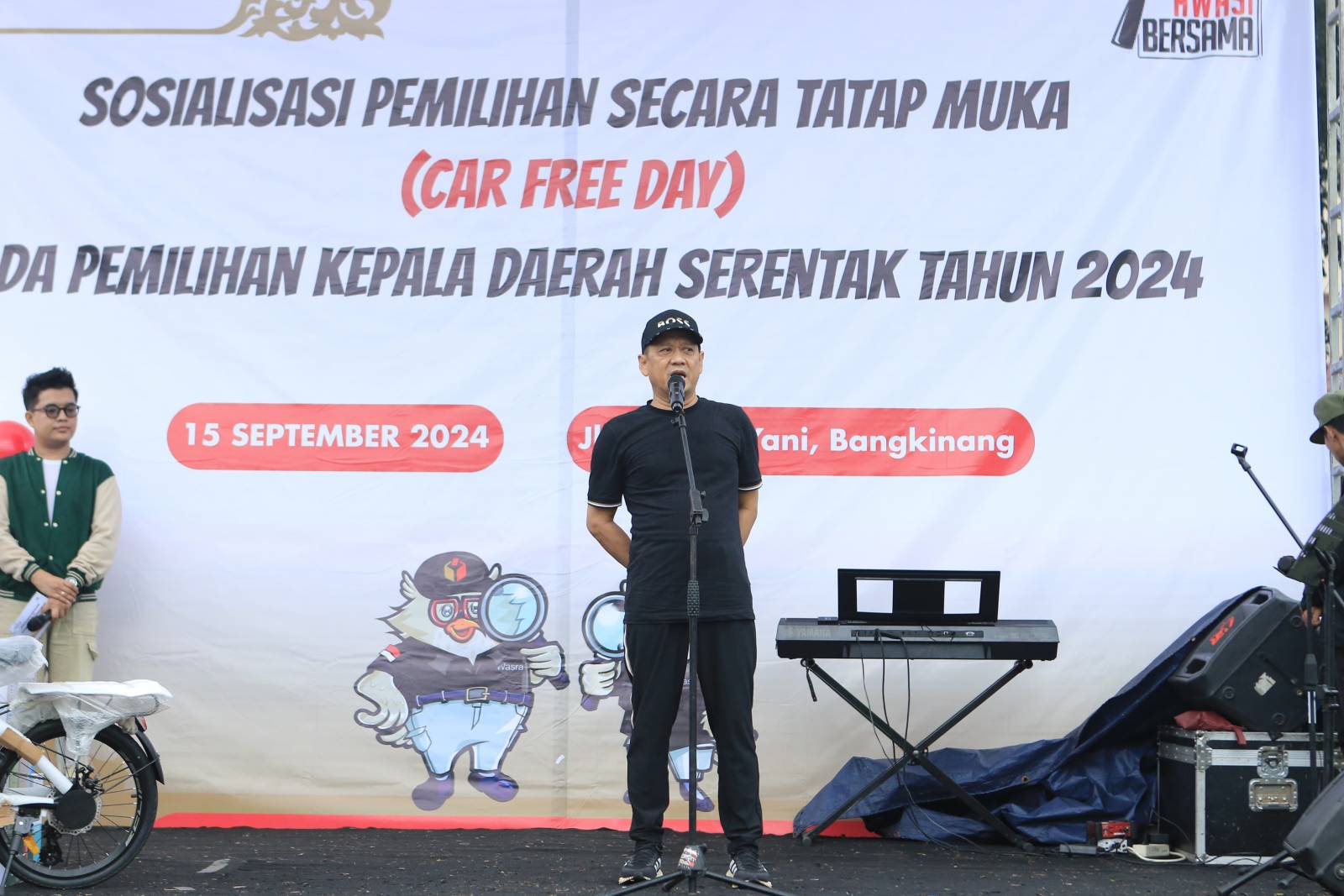 Acara ini dihadiri juga oleh Ketua Bawaslu Kabupaten Kampar Syawir Abdullah SH, Kapolres Kampar AKBP. Ronald Sumaja S.I.K, Dandim 0313/KPR yang di wakili Pasi OPS Kapten Inf Sutan Syahrir, Danyon 132/BS yang diwakili Danton Ang, Letda Inf. Arifin Tanjung, Ketua KPU Kampar Andi Putra dan paslon Bacabub dan bacawabub yang akan mengikuti pesta demokrasi yang akan datang dan serta masyarakat yang sangat antusias dalam mengikuti kegiatan senam bersama. Selain sebagai ajang untuk menjaga kesehatan dan kebugaran, acara ini juga dimanfaatkan oleh pemerintah daerah sebagai sarana sosialisasi penting mengenai tahapan pemilihan kepala daerah yang akan diselenggarakan serentak pada tahun 2024.