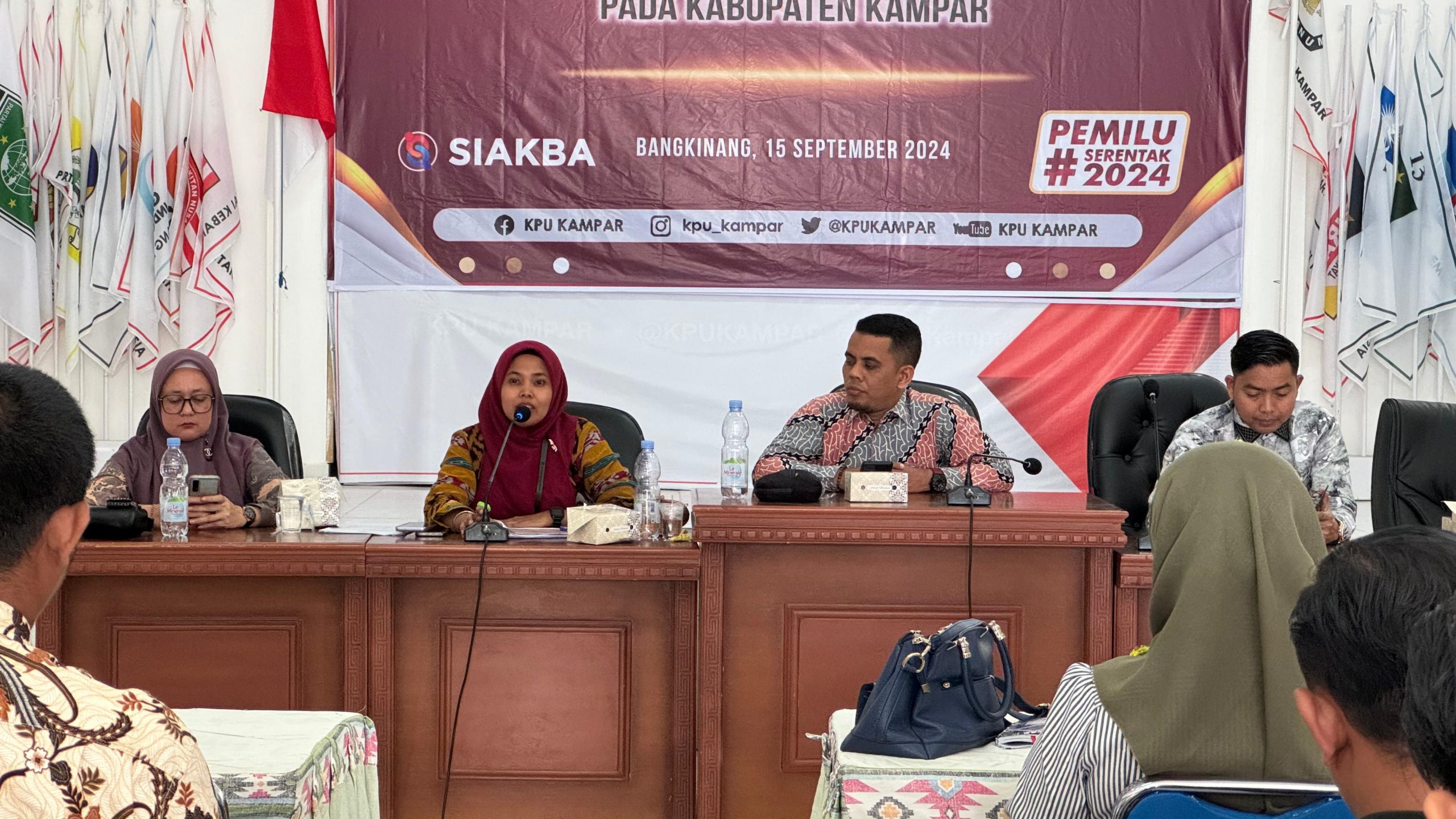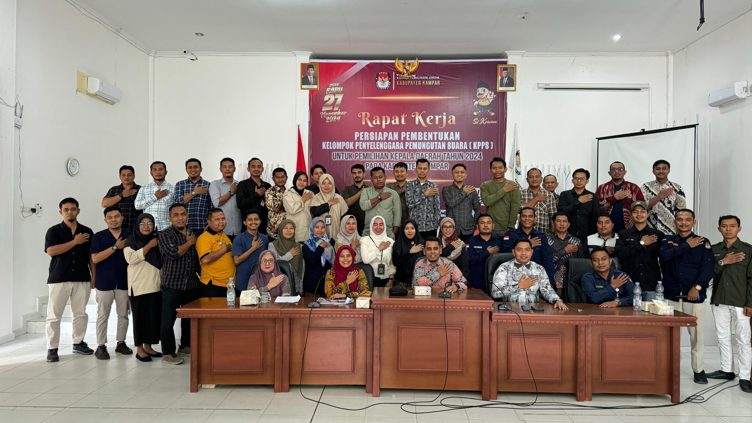 KPU Kabupaten Kampar menggelar Rapat Kerja Pembentukan Kelompok Penyelenggara Pemungutan Suara (KPPS) dengan Panitia Pemilihan Kecamatan (PPK) se-Kabupaten Kampar, minggu (15-09-24).