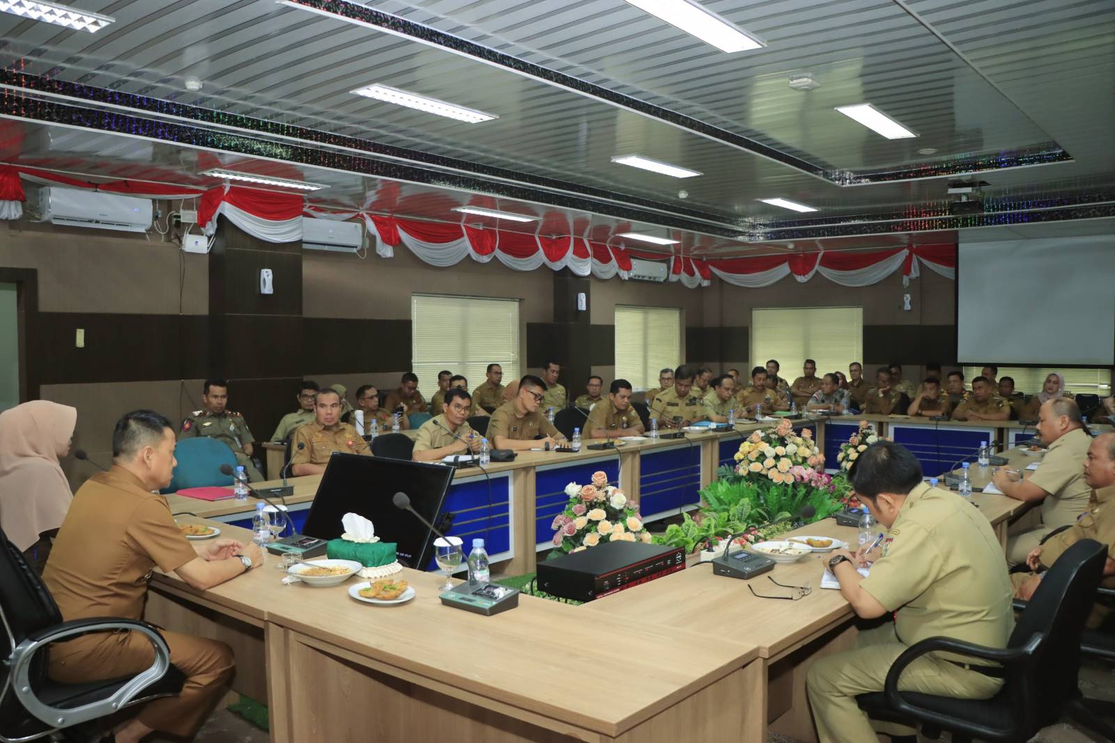 BANGKINANG KOTA – Pj Bupati Kampar Hambali, SE,MH didampingi Plh Sekda Kampar Ir Ramlah, M.Si gelar rapat kerja bersama para Kepala OPD dan para Camat, senin (30-09-25). Rapat ini juga menekankan terhadap percepatan dan realisasi program pembangunan Kabupaten Kampar.