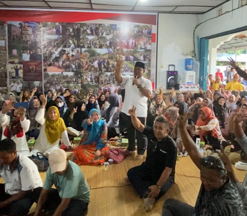 KUOK (rina.com) : Calon Bupati Kampar Nomor Urut 2 Drs H Yusri, MSi disambut antusias ratusan masyarakat Kecamatan Kuok saat menggelar kampanye dialogis di Desa Lereng, Senin (30-09-24).