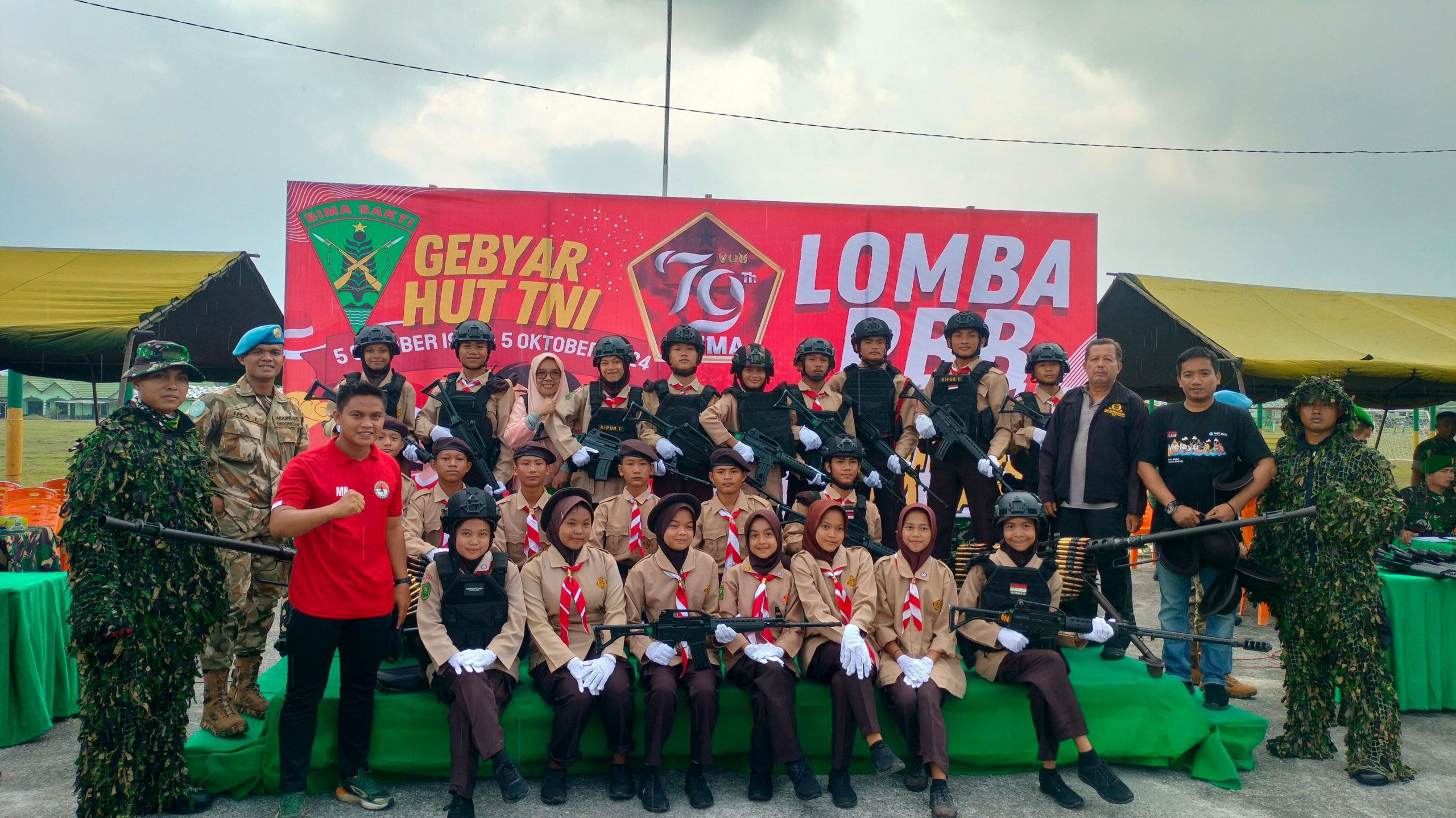 Salo (rina com) : untuk memperingati HUT TNi ke 79, Unit Satuan Pendidikan (UPT) SMP Negeri 2 Salo, kecamatan Salo kabupaten Kampar memgikuti lomba Pasukan Baris berbaris yang dilaksanakan oleh Batalyon Infanteri 132/BS untuk tingkat Sekolah Lanjutan Tingkat Pertama (SLTP). Kegiatan yang berlangsung di Lapangan Markas Yonif 132/BS ini diikuti oleh berbagai sekolah dari wilayah Bangkinang dan sekitarnya, Salo, Kab. Kampar, Riau. Sabtu (28/9/2024) yang lalu.