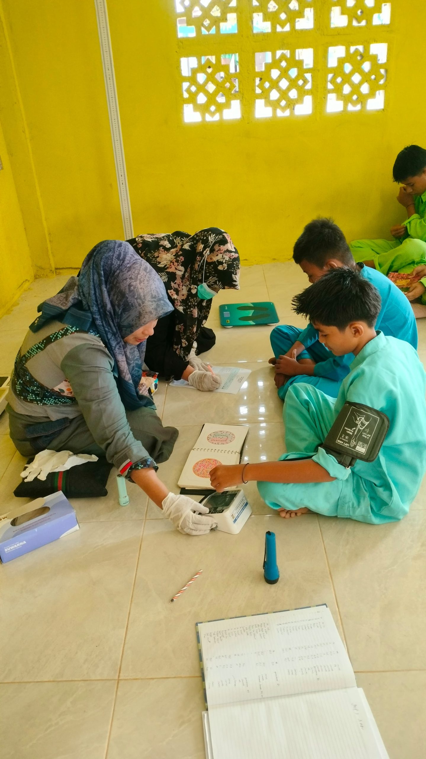 Sejak pagi para tenaga medis dari puskesmas tersebut sudah datang dan melakukan pemeriksaan, para siswa ini diperiksa tensi, lalu diukur tinggi badan dan berat badannya. Mereka juga diberikan obat bila ditemukan keluhkan.
