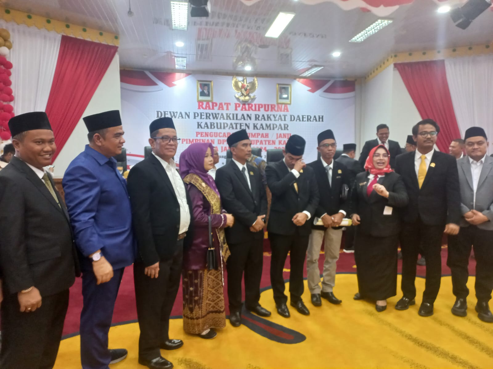 pengambilan sumpah dan janji pimpinan DPRD Kampar masa jabatan 2024-2029 di Gedung Dewan Bangkinang, Senin (28-10-24).(budi/rina.com)