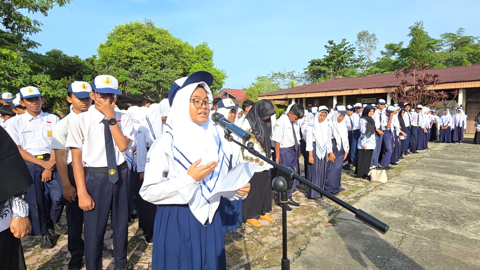 Suasana upacara peringatan hari Guru di UPT SMP Negeri 2 Bangkinang Kota (25-11-24) (rdh)
