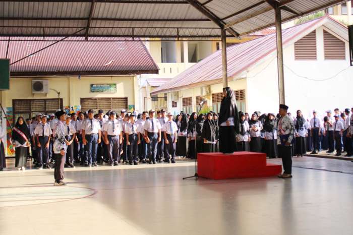 Kegiatan diawali dengan pelaksanaan upacara bendera yang semua pelaksananya adalah guru. Sebagai pembina upacara, Kepala UPT SMPN 1 Bangkinang Kota, Hj. Masniar, S. Pd, MM menyampaikan ucapan terima kasih kepada semua guru, tendik, pengurus OSIS dan seluruh siswa dan orang tua, khususnya Moraya Ratu Fonenten yang telah memberikan support untuk kegiatan hari ini.