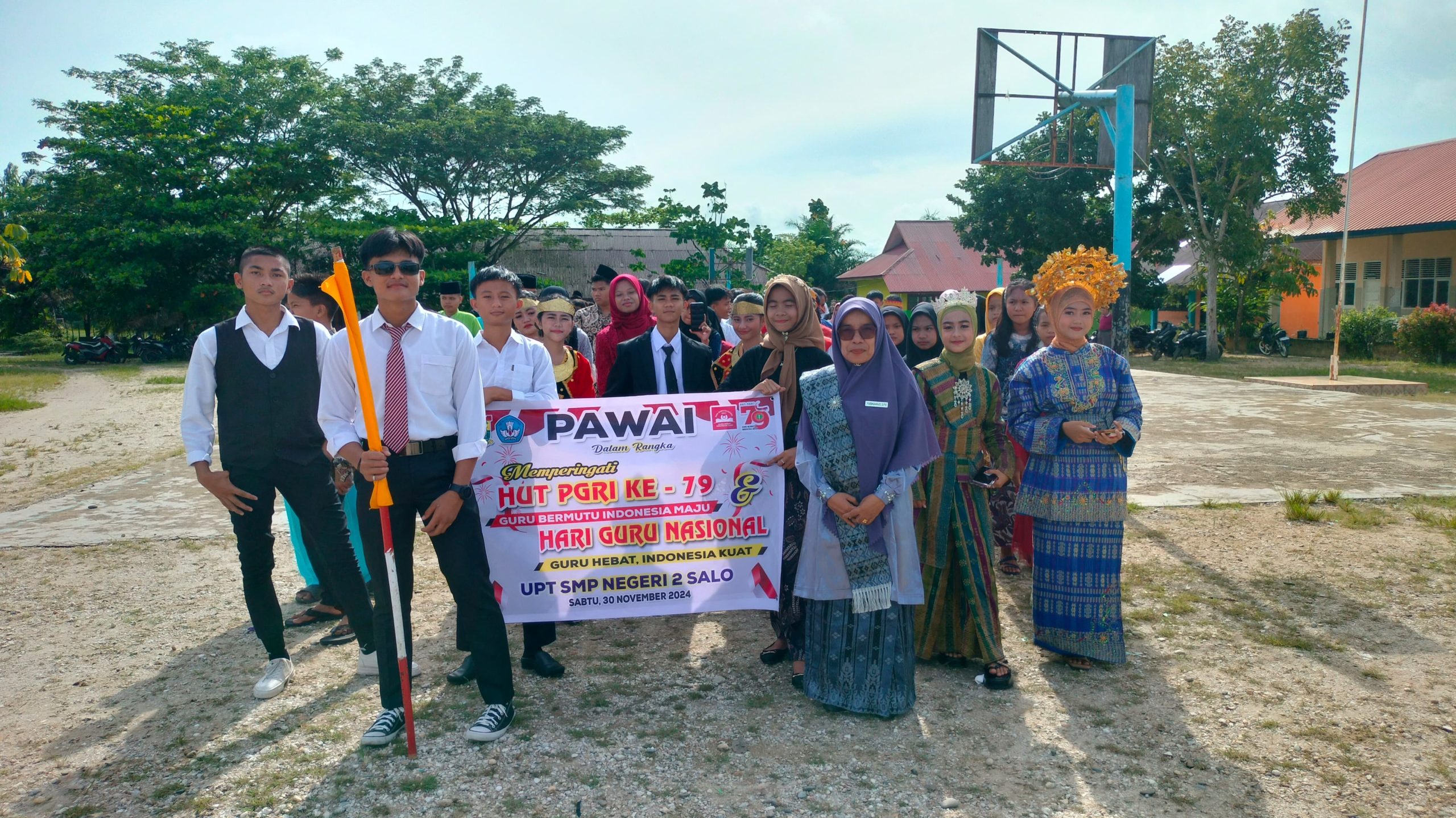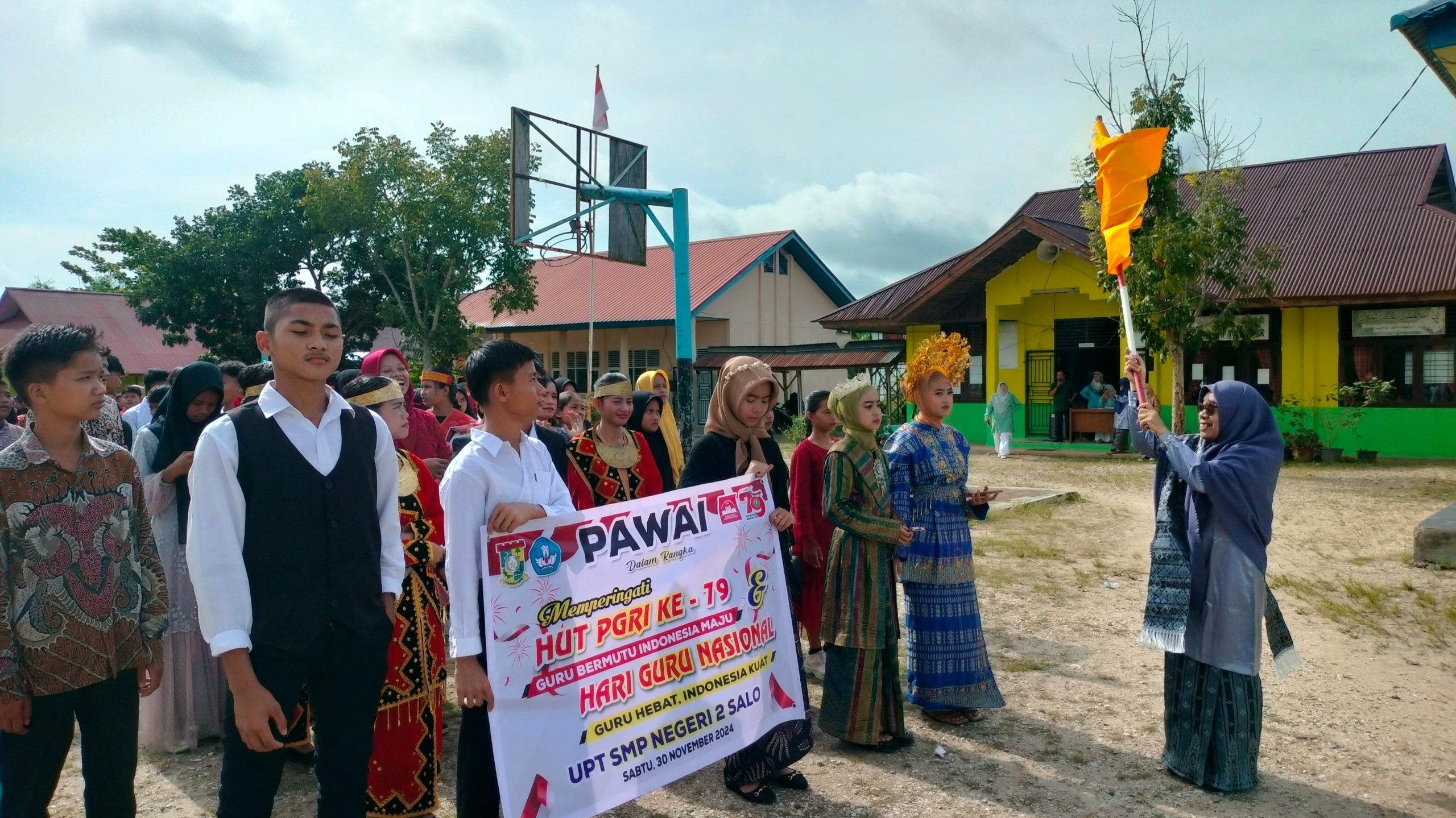 Salo (rina com) : Untuk memperingati hari ulang tahun Persatuan Guru Republik Indonesia (PGRI) Unit Satuan Pendidikan (UPT) SMP Negeri 2 Salo, kecamatan Salo kabupaten Kampar melaksanakan pawai. Pawai yang dilaksanakan (40-10-24) ini dilepas langsung oleh Kepala Sekolah SMP N 2 Salo Yusmawati.