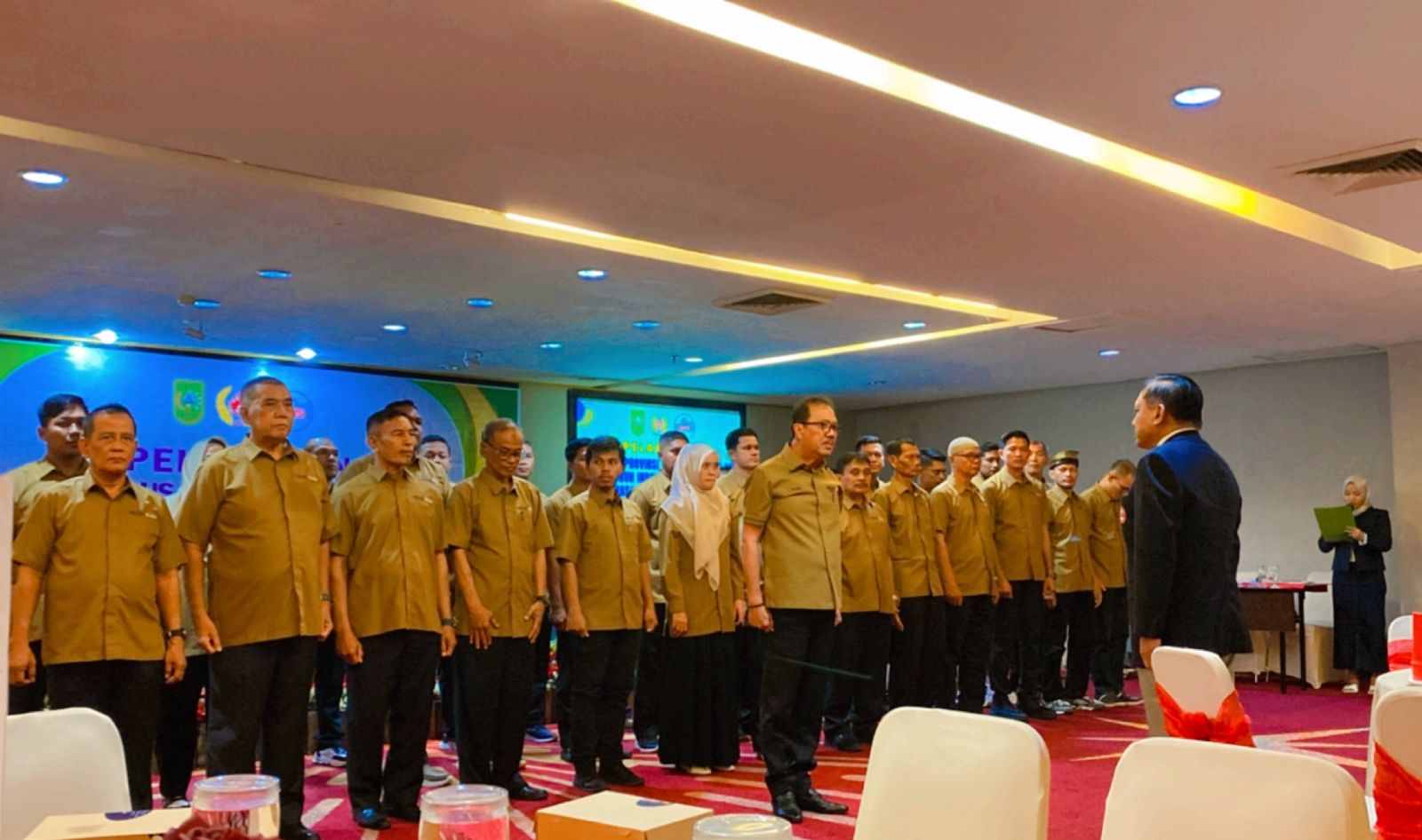 Hadir dalam pelantikan tersebut Penjabat Gubernur Riau (Pj Gubri) yang diwakili Pelaksana Harian Kadispora Riau Helfandi SE M.Si. Turut hadir juga Ketua PBVSI Kota Pekanbaru DR. M. Haris Kampay, SPd, MPd dan Sekum serta seluruh Pengkot/ Pengkab PBVSI kecuali Dumai yang sudah habis masa kepengurusan.