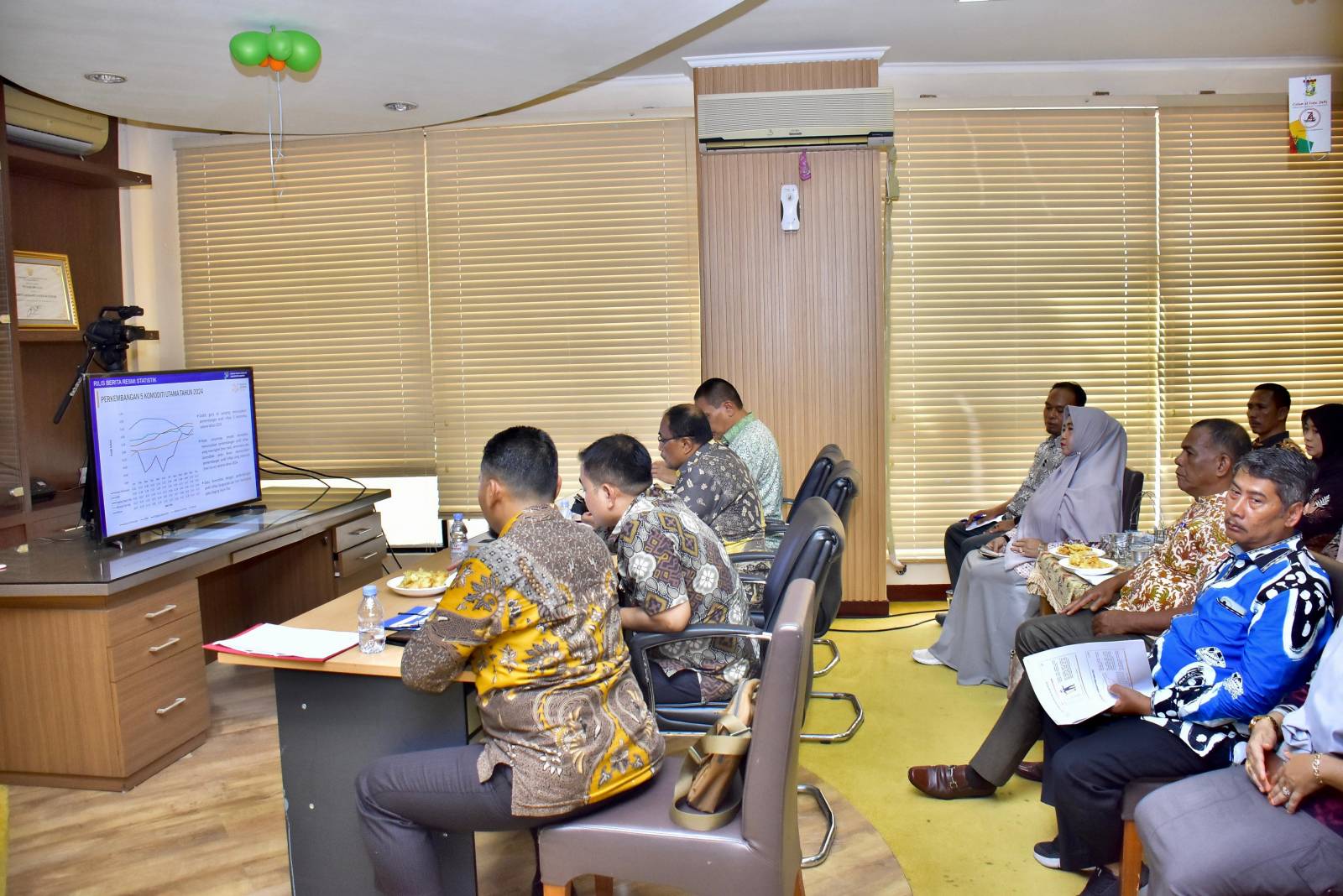 Bangkinang Kota (rina.com) : Pj Bupati Kampar H. Hambali, SE,MBA,MH diwakili Asisten II Setda Kampar Suhermi,ST bersama BPS Kabupaten Kampar mengikuti kegiatan rilis inflasi yang dilaksanakan di Ruang Rapat Lantai III Kantor Bupati Kampar. Kamis (02-01-25).
