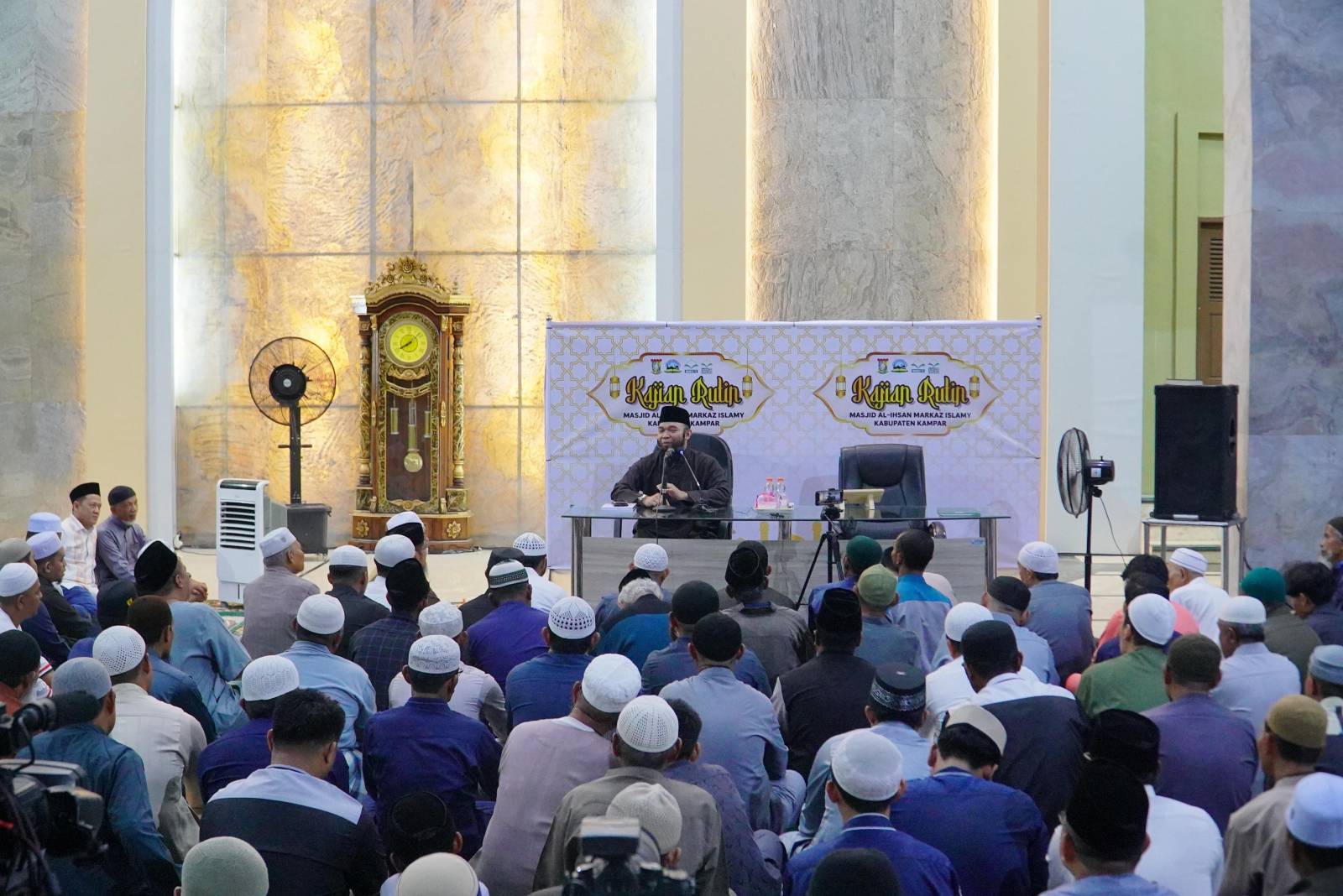 Ribuan jamaah memadati Masjid Islamic Center Bangkinang Kota yang datang dari berbagai wilayah di Kabupaten Kampar untuk mengikuti kajian yang sudah dinantikan. Kehadiran Ustadz Arriful Bahri, yang biasa memberikan tausiah di Masjid Nabawi, menjadi motivasi tersendiri bagi masyarakat untuk hadir lebih awal.