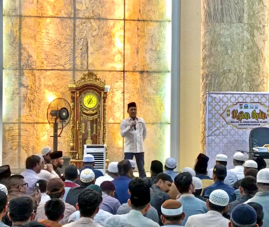 Bangkinang Kota (rina.com) : Penjabat (PJ) Bupati Kampar Hambali, SE.MBA.MH menghadiri kajian Akbar yang diselenggarakan di Masjid Islamic Center Bangkinang Kota. Kamis (02-01-25).
