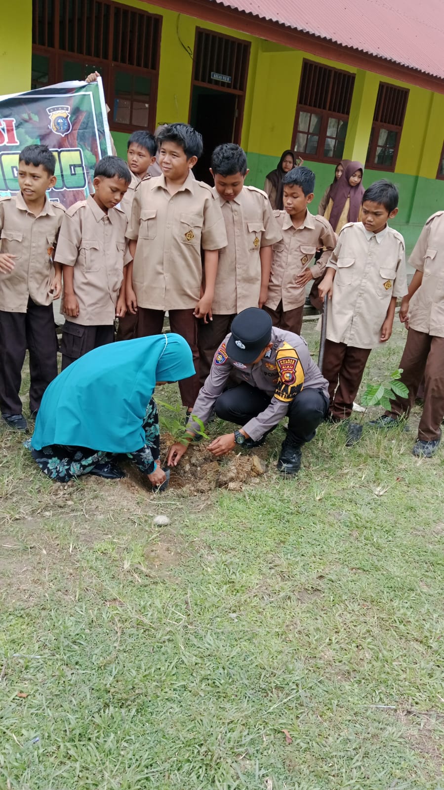 Polsek Salo Gelar Kegiatan Green Policing di SMP Negeri 2 Salo: Tanam Pohon dan Edukasi Lingkungan