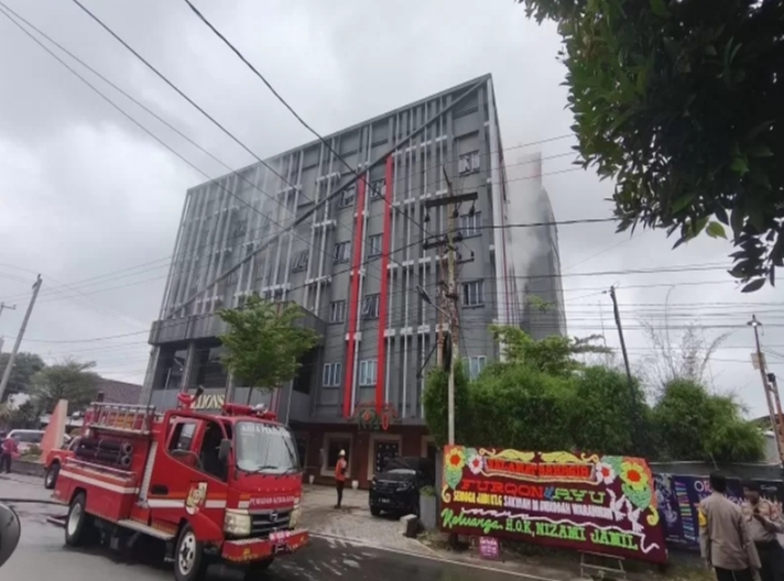 Asap hitam pekat membubung dari lantai atas hotel dan memicu kepanikan di antara tamu dan karyawan. Suasana pun berubah mencekam saat mereka berhamburan keluar menyelamatkan diri.
