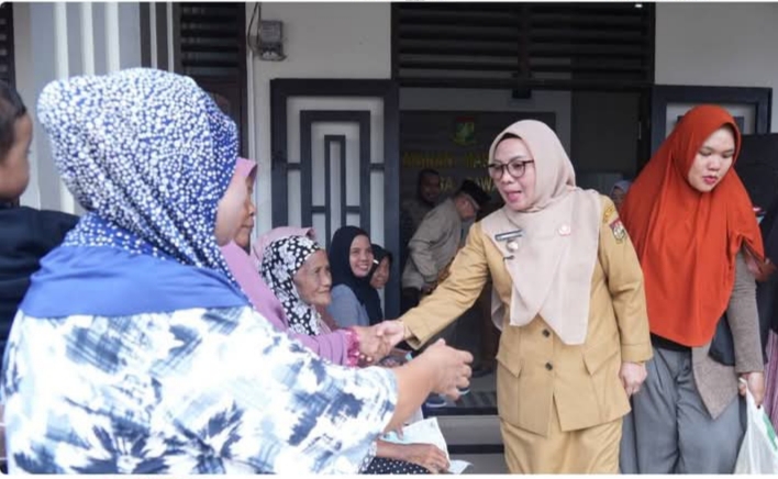 Kampar Utara (rina.com): Wajah-wajah penuh harap tampak di halaman Kantor Desa Sawah, Senin (20/04/26). Satu per satu warga datang membawa kartu penerima, menunggu giliran menerima bantuan sembako. Di tengah suasana itu, Wakil Bupati Kampar Misharti hadir langsung menyerahkan bantuan pangan, memastikan program benar-benar sampai ke tangan masyarakat.
