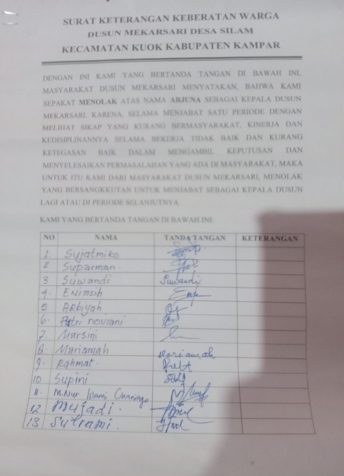 Warga Mekarsari Tolak Pelantikan Kadus, PJ Kades Bungkam, BPD Klaim Baru Tahu
